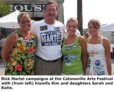 The 48-year-old attorney from Catonsville kicked off his campaign with a July 27 speech outside his law office in Arbutus, where he was endorsed by Gov. Robert Ehrlich. After that, he said, as with all campaigns, his began with a period of fund-raising. “We raised $35,000 in the first 40 days of the campaign,” he recalled. On August 25 he began a rigorous effort “to get my name out in the community” through neighborhood canvassing in Catonsville, Arbutus, Elkridge and Columbia. Martel, a first-time candidate, clearly has an uphill battle. His opponent has the name recognition that comes from 20 years in the General Assembly. Moreover, Democrats outnumber Republicans 2-to-1 in District 12. Yet, Rick noted, “The district voted almost 70 per cent in favor of Governor Ehrlich” in the 2002 elections. In his door-to-door campaign, he said, he has found that “People are very upset with the Maryland legislature – the polarization that went on as soon as Ehrlich was elected. “[Senate President] Mike Miller and [House Speaker] Michael Busch lined up their troops, circled the wagons, and blocked Ehrlich on issues like slots, the Wal-Mart bill and the BGE rate hike.” Kasemeyer voted 41 times to override the governor’s vetoes in the last General Assembly session, Martel noted. “Partisan politics was put above the good of Maryland citizens,” he charged. Martel said that he comes from a blue-collar family and was a Democrat for 30 years. “I worked since I was 14, as a caddie and in a grocery store, and I worked my way through college and law school. “I’m very much in favor of the working man. But I believe the Democratic Party has left me behind.” Martel is one of several candidates receiving financial support from the Maryland GOP, which wants to increase the number of Republicans in the State Senate from 14 to 19, providing Governor Ehrlich with a veto-proof senate. “If the people are going to vote to send Ehrlich back to Annapolis, then they need to vote for me to give the governor’s programs a chance,” he said. Martel received his bachelor’s degree, with a double major in political science and economics, from the University of Maryland, Baltimore County in 1980. He is a graduate of the University of Baltimore School of Law and was admitted to the state bar in 1983. Rick provides pro bono legal help through the Homeless Persons Project at the Helping Up Mission in Baltimore. He and his wife Kim have been married 26 years and have five children and one grandchild. Their children have attended Lamb of God School in Halethorpe, Mount de Sales Academy and Mount St. Joseph High School. The Martels are parishioners at St. Agnes Church in Catonsville. |